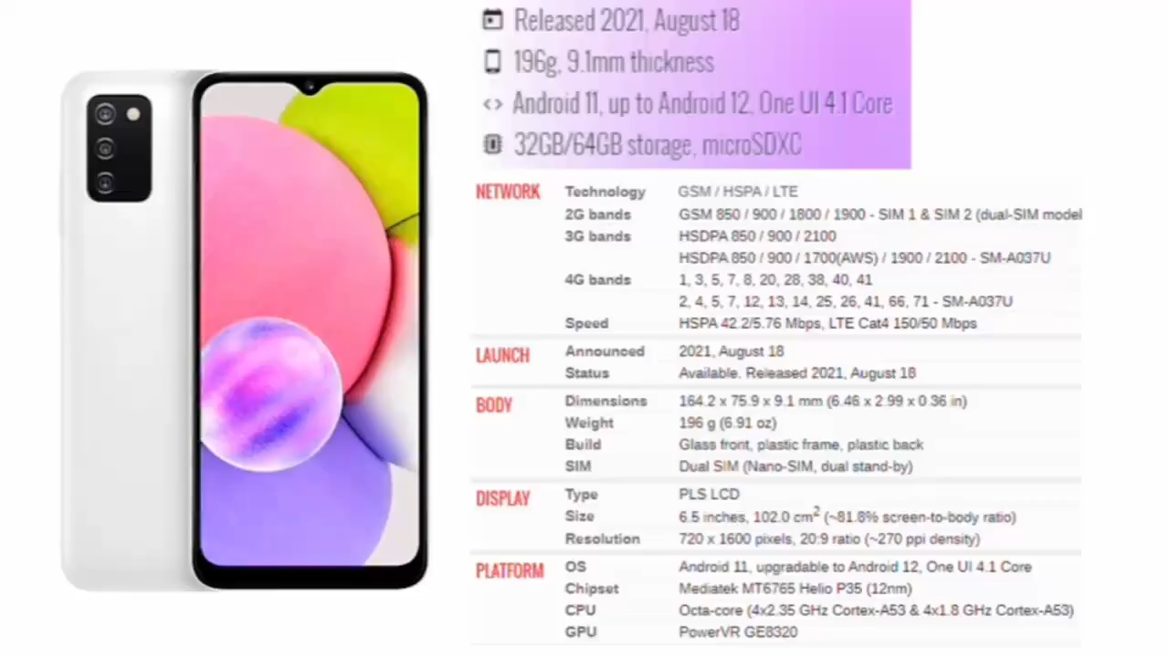 • MODERN DESIGN: As one of our most affordable A Series phones, Galaxy A03s is both simple and durable; And its side-mounted finger sensor adds a personal touch to security